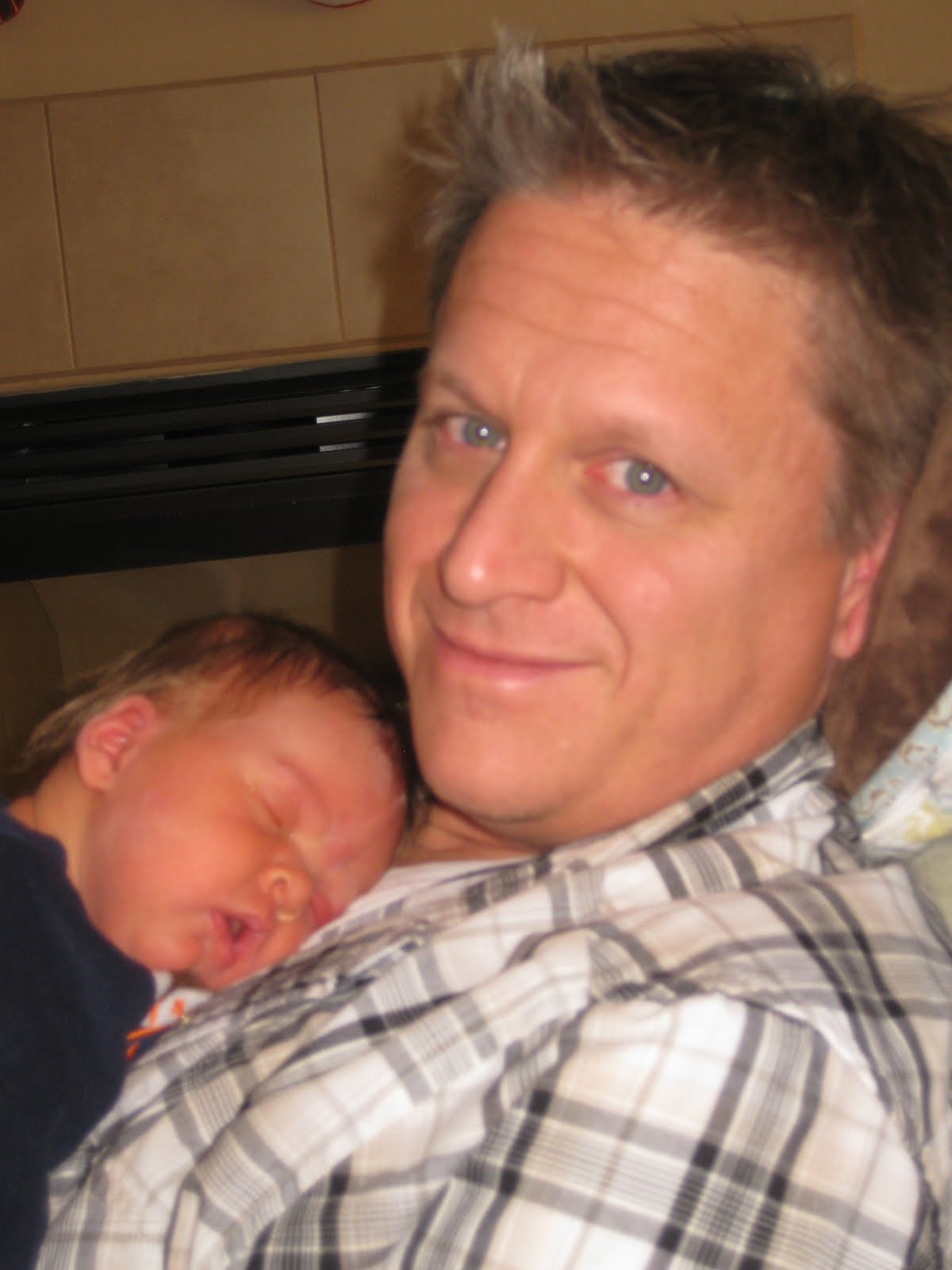 The nurse immediately wheeled me into a labor/delivery room and asked if I was needing to push. I realized that I did and she said to wait until my doctor arrived. She helped me onto the bed and I asked if there was any time for an epidural. She laughed and said that the head was "right there" and I was already dilated. The doctor comes in and asks again if I need to push. I do...and a few pushes later (along with blinding pain) Hayes arrived! I wasn't even able to get an IV. I was hoping for the cute family photo in the hospital where my hair is done and I have a glowing look about me...but our photo consists of me still in shock..with my T-shirt on that has holes in it from the dryer. Not quite the family photo that I imagined, but it definitely makes for an interesting story. Hayes David Evatt was born at 11:03pm at 7lbs 140z and 20-1/4 inches long. We love him so much! Wyatt is becoming a great big brother!